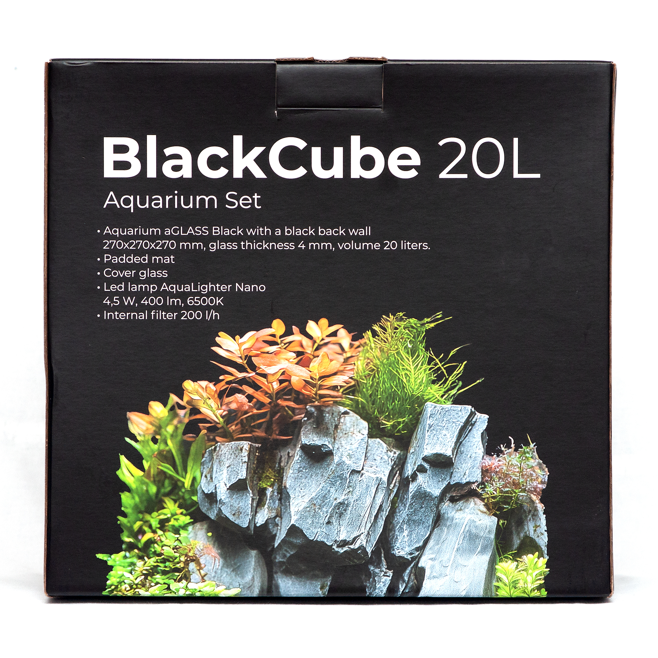 Nano Aquarium Black Cube 20 L - mit Innenfilter, LED, Abdeckscheibe und Unterlegmatte